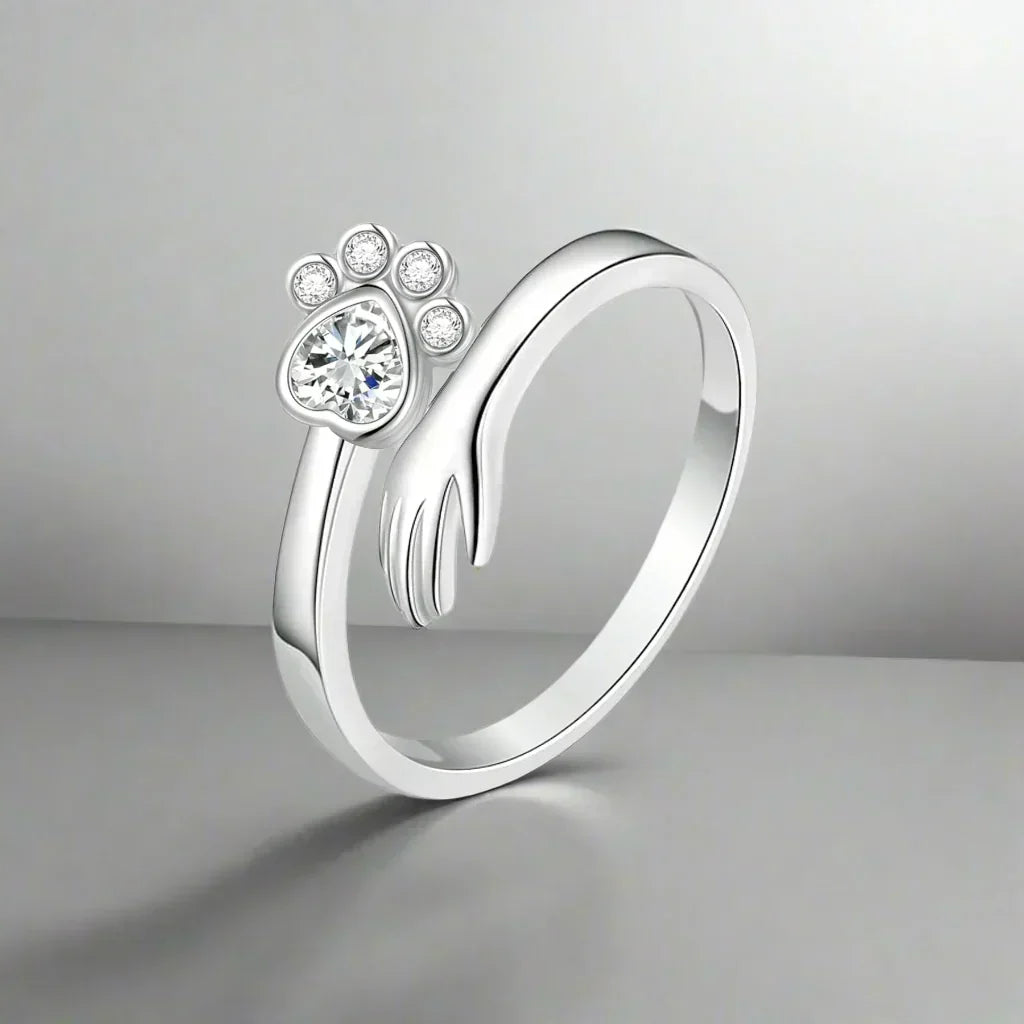 Prsten ze stříbra s tlapkou a srdcem