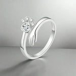 Nastavitelný prsten ve tvaru tlapky ze sterlingového stříbra – design ruka-v-tlapce