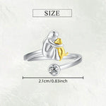 Tento elegantní prsten je tichým symbolem lásky, která trvá po celý život. Měkký design zobrazuje ženu a jejího psa v jemném objetí — jednoduché, dojemné a plné významu. S malým krystalem, který zachycuje světlo, přidává nádech třpytu, zatímco si zachovává klidný, nadčasový pocit.